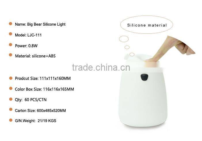 Portable Touch Sensor Rechargeable Cute Bear Silicone Led Night Light