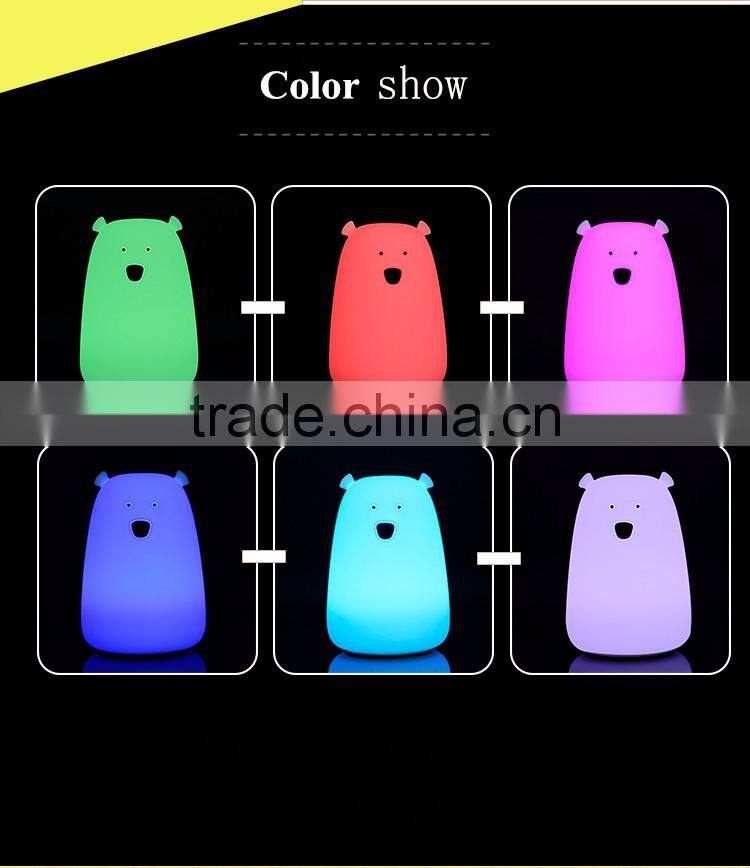 Fancy Animal Usb Kids Mini Portable Touch Sensor Rechargeable Cute Bear Silicone Led Small Night Light