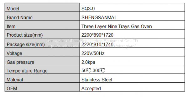 Home > Products > Gas Oven series > SQ3-9 Three Deck Nine Trays Commercial Gas Oven