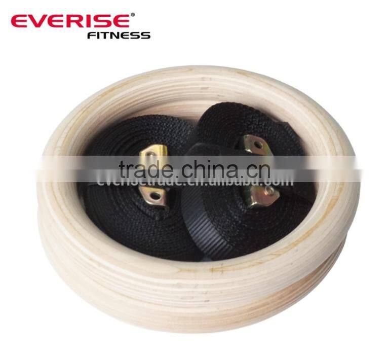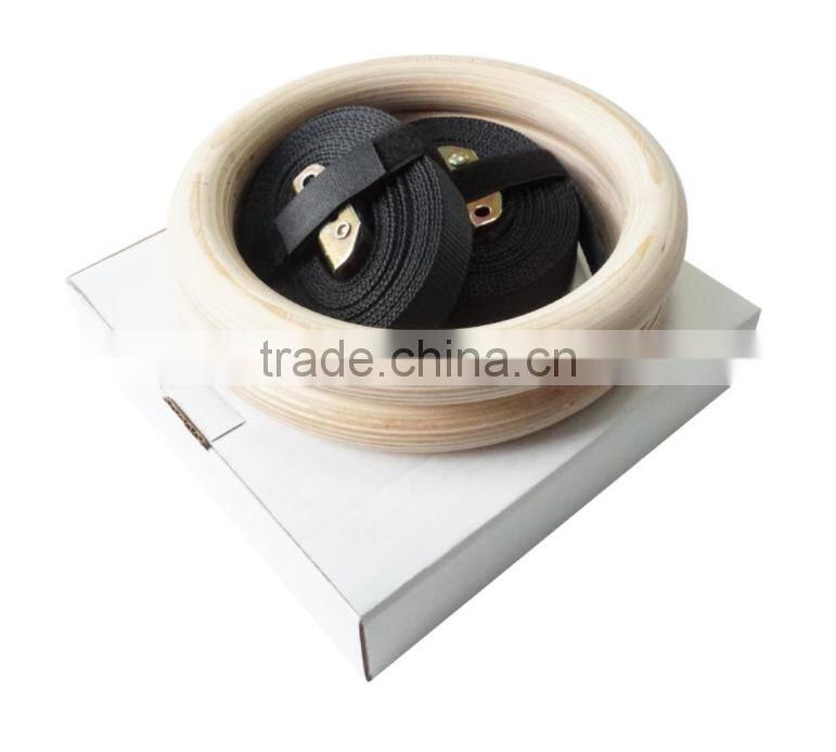 Nylon Strap Crossfit Wooden Training Gymnastic Rings With Black Box