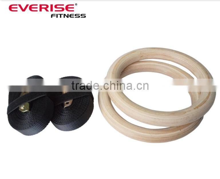 Wooden Gym Rings With Adjustable Gym Wrist Straps for Crossfit