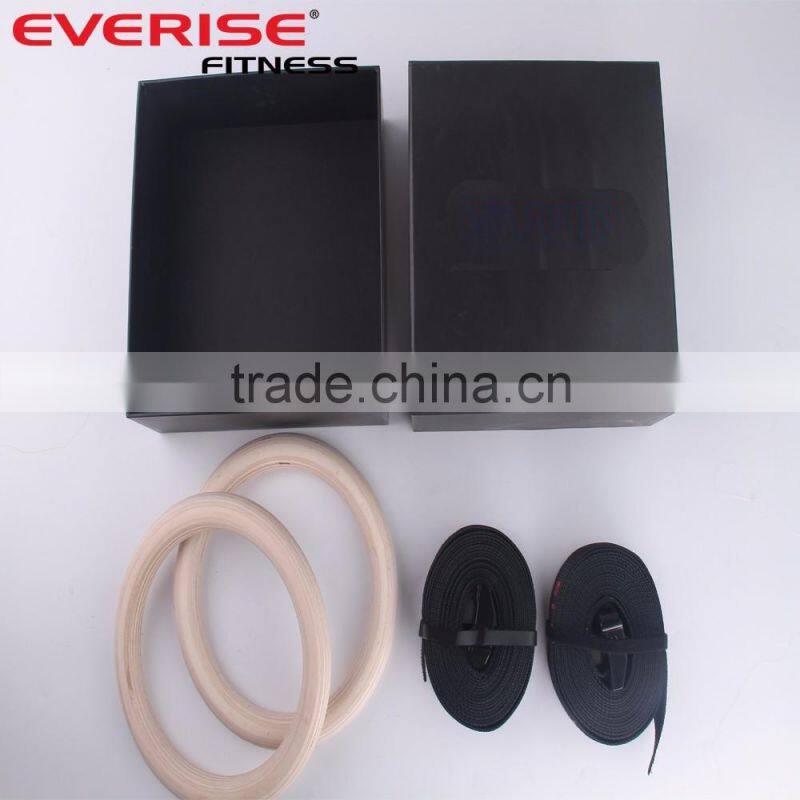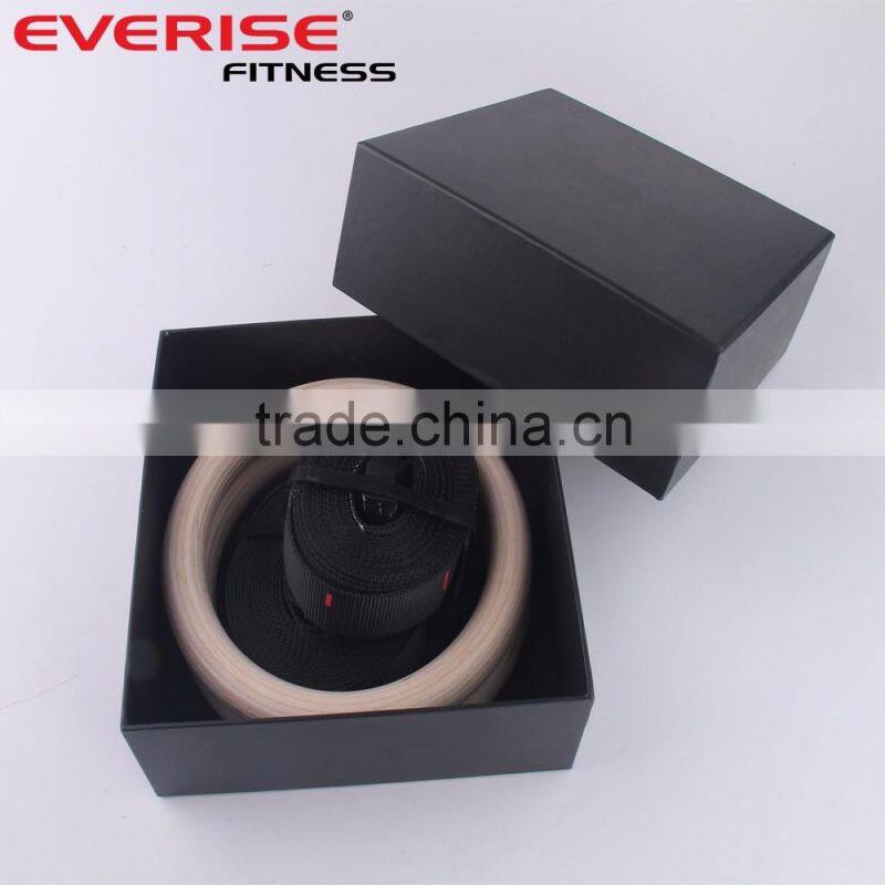 Nylon Strap Crossfit Wooden Training Gymnastic Rings With Black Box