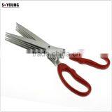 61019 New Design And High Quality Snipping Shearing Plastic Household Kitchen Stainless Steel 5 Blades Herb Scissors