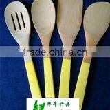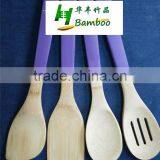 2017 Wholesale Natural Bamboo Slotted Spoon With Colorful Handle