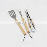 3 Pcs Food Grade BBQ Fork Spatula Tong in Stainless Steel With Wood Handle Set
