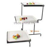 Dining Three Tier Rectangle Ceramic Plate Set Ware With Metal Stand