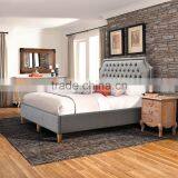 Bed Furniture Model Platform, Upholstered With Fabric, Tufted Head Board Grey Teak Wood