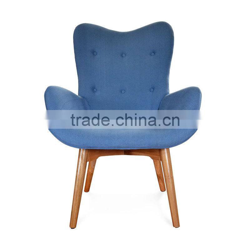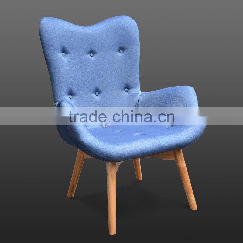 Most Comfortable chair to use them on your library room, Chair is self made from solid teak wood for the fame, and all around of seat and backrest design ergonomics to your body and you can fill it while you seat on it, soft foam covered with denim fabric as per this picture.