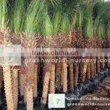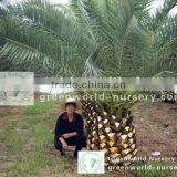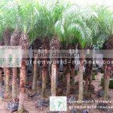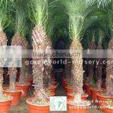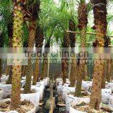Strong diameter trunk, compact leaves. size :trunk 10cm-3meter, best Standard.This delightful little palm is a favorite landscape item in areas where it is hardy. It is just as likely to be encountered as a popular indoor container plant often used in shopping mallscapes and other commercial plantings. Pygmy date palm grow slowly reaching heights of 8-10 ft (2.4-3.1 m). The stem is covered with old leaf bases and is topped with a dense head of bright green pinnate leaves that grow to about 4 ft (1.2 m) in length. Delicate leaflets, arranged neatly along the upper length of the gently arched leaf stem lend the plant a very graceful aspect. Lower leaflets are modified into sharp pointed 2-3 in (5-8 cm) spines.