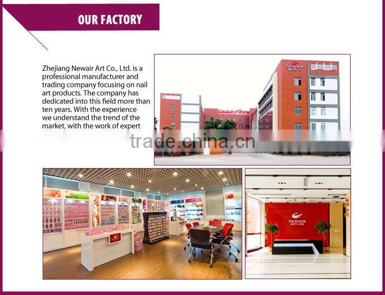 Zhejiang Newair Art Co., Ltd. is a leading company in the industry of nail care. Our company has dedicated to this field for about ten years. Our main products include nail tips, nail strips, nail stickers and nail decorations. Newair Art covers an area of more than 6,000 square meters, and there are over 200 employees in our company. The factory of Newair is equipped with the most advanced machinery. We possess great productivity. Newair can provide both ODM and OEM service to our global customers. All the workers in our factory have worked in this industry for many years and have rich experience in producing fashion nail products. The fashion nail products of Newair are met with international standards. Due to the high quality of our products, we have exported them to Europe, the Americas and Asia. Newair products enjoy an exceptional good reputation in these markets. After years of development, Newair has expanded the products to three brands, namely Newair, Vivi and Joyme. Now, Newair is focused on being the strongest nail fashion enterprise in China, even the whole world. All the staff in Newair does their best to fulfill this ambitious goal.