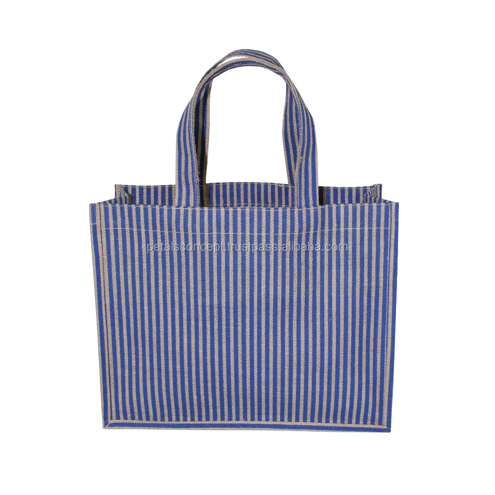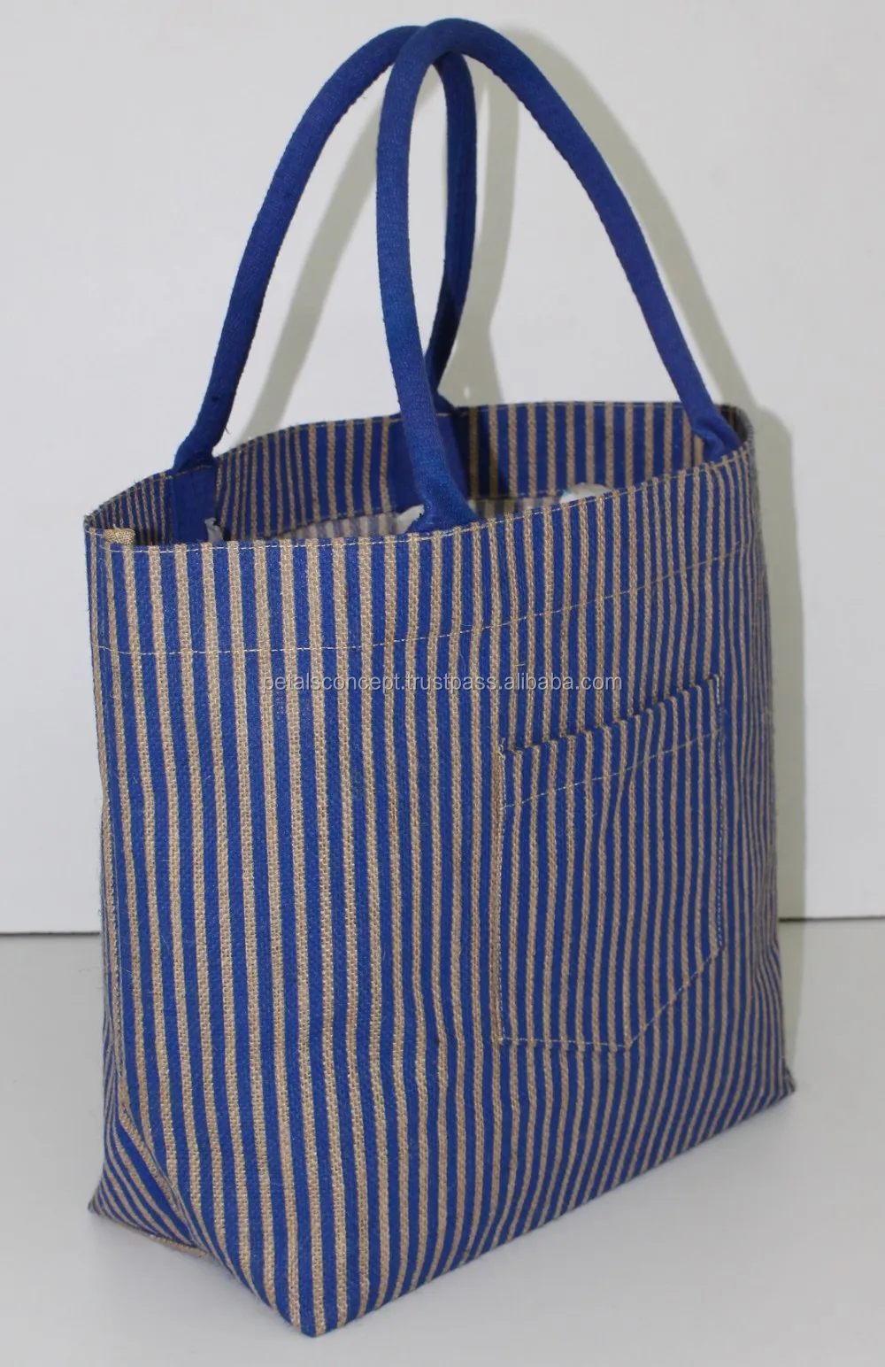 Hot One Color Allover Strip Print Male Hifashionable Tote Bag With Pocket - pp Laminated Jute Fabric