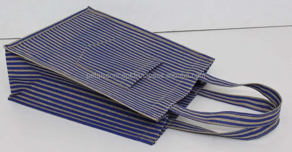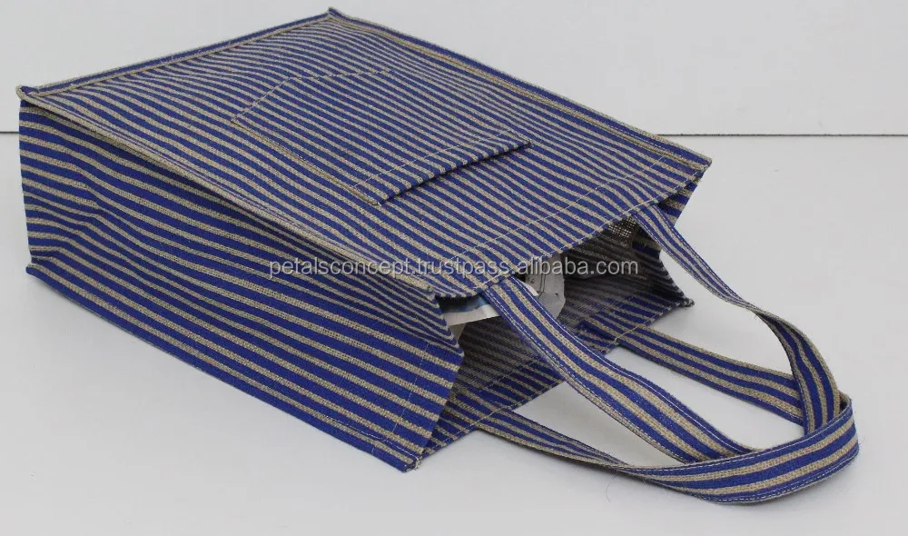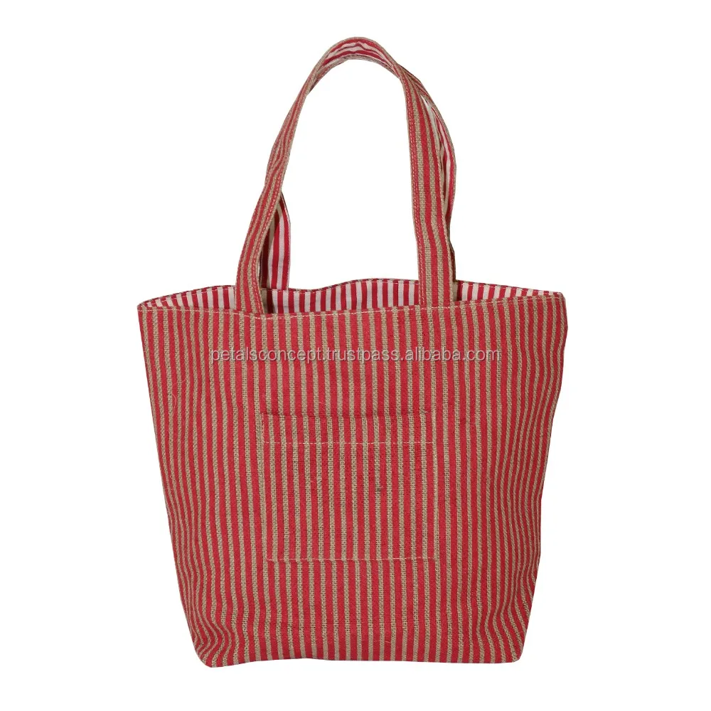 Hot One Color Allover Strip Print Male Hifashionable Tote Bag With Pocket - pp Laminated Jute Fabric