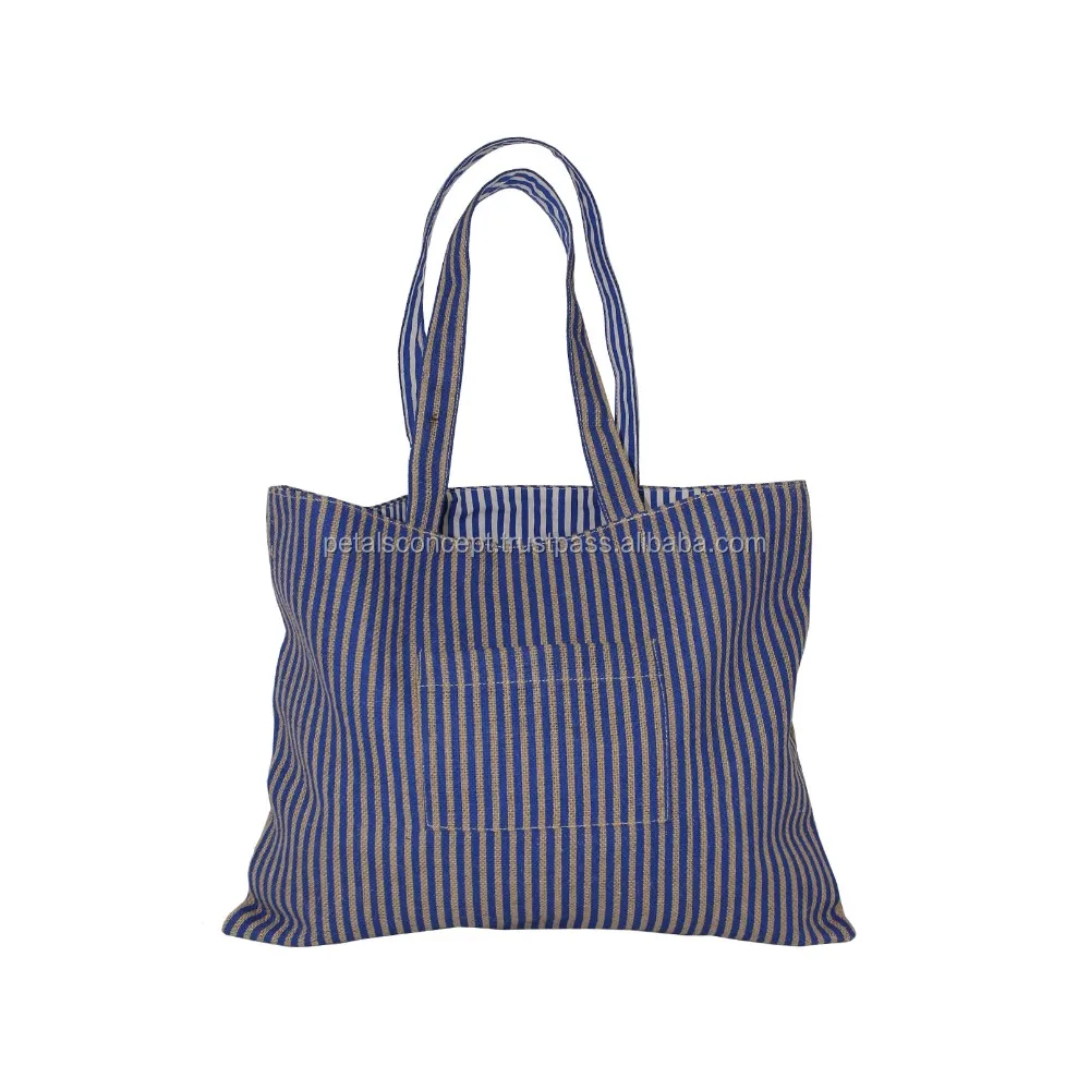 Natural Canvas Stripe Print Tote Bag - One Color Stripe - Fashionable Ecofriendly