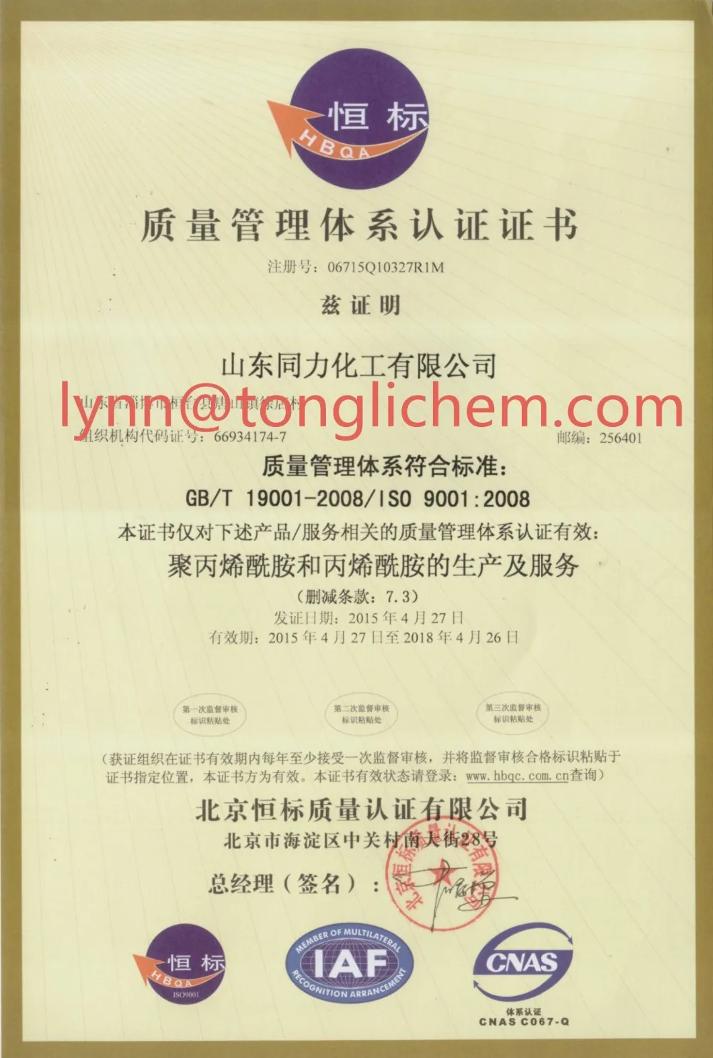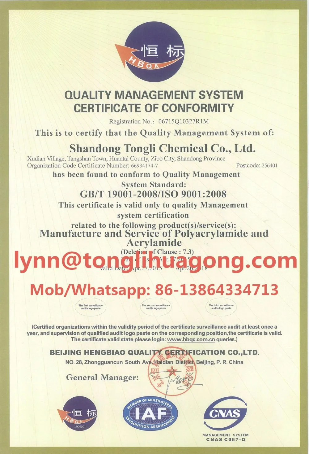 Equipped with advanced technology and facilities, the company is specialized in producing a great variety of high quality products such as polyacrylamide, acrylamide, water treatment agent, etc. Our products are widely used in oil field drilling, paper making, sewage treatment and other industries.
