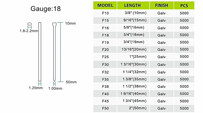 Decorative Flooring F Series Online Shopping Nail 18Ga F15-F50 Brad Nails