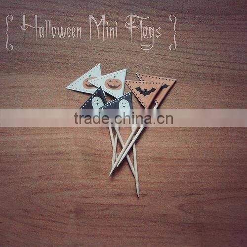 Hywoodstick Halloween Small Paper Flags Economic Flags In Wooden Stick For Food Pick