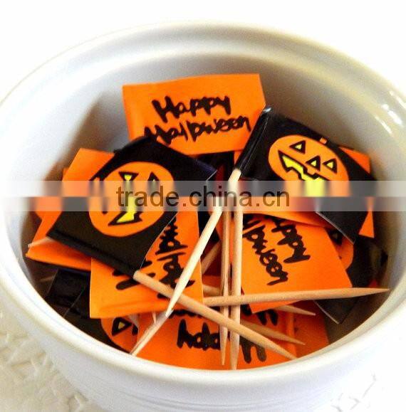 Wholesale Disposable Wooden /Bamboo Flag Toothpicks For Halloween Decoration