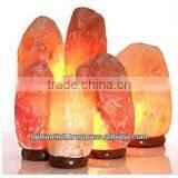 Himalayan Natural Salt Lamp Pyramid Shape Wooden Base