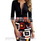 Women Sexy Dress Spring Autumn Vintage Geometric Printed Front Zipper Bodycon Knee Length Pencil Mini Dresses