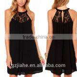 Summer Style 2015 Fashion Women Sexy Lace Patchwork Chiffon Dresses Sleeveless Casual Loose Party Mini Dress