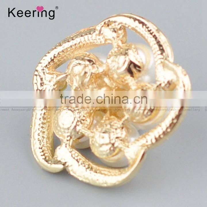 Decorative Fashionable Alloy Flower Pearl Metal Rhinestone Button WBK--1494