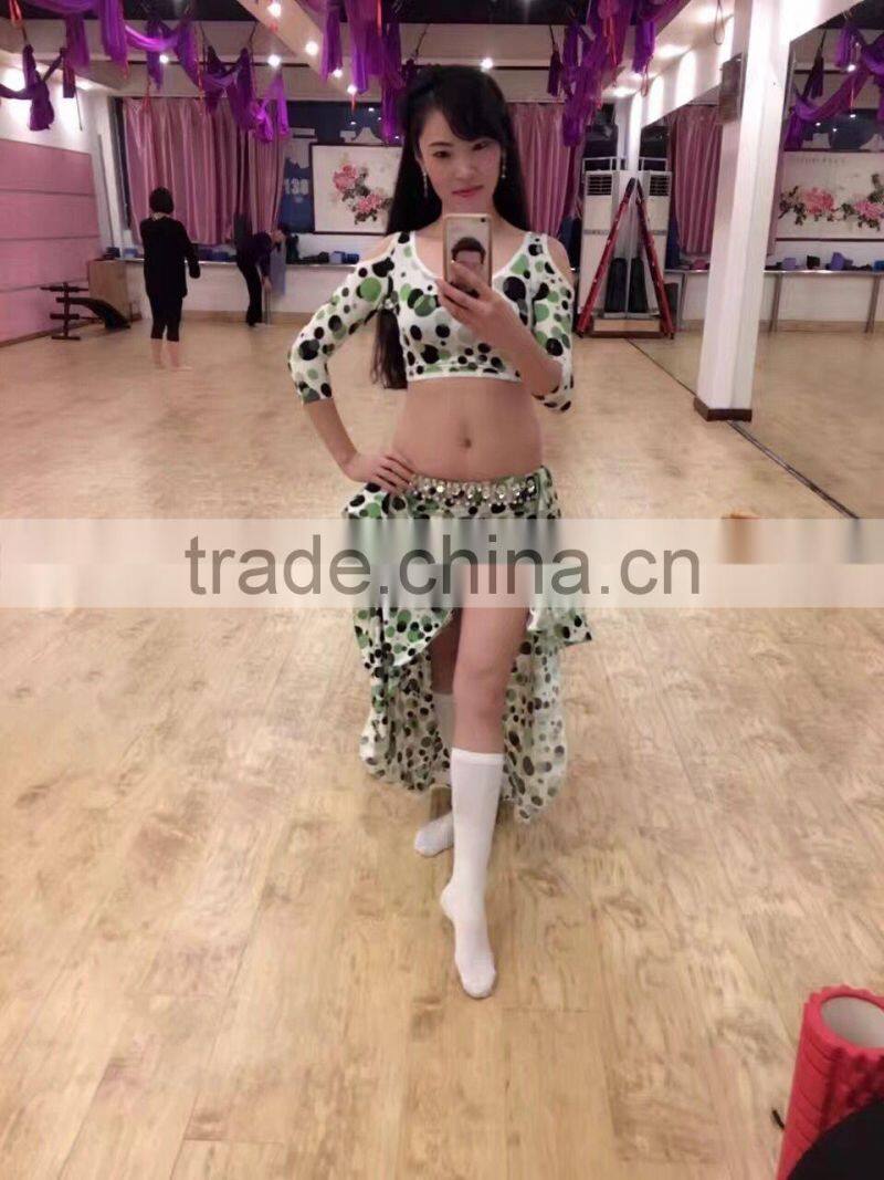 Dot pattern crop top and skirt belly dance clothing for practice QQ073
