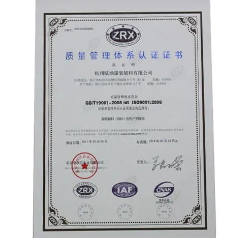 ISO9001, SGS, INTERTEX, OEKOTEX STANDARD 100