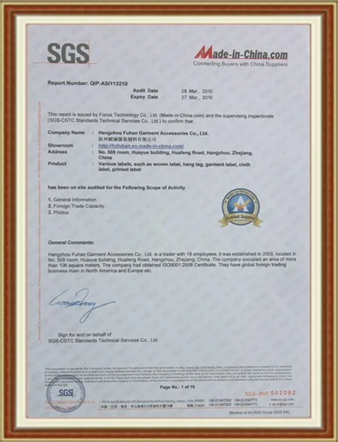 Hangzhou Fuhan Garment Accessories Co., Ltd is established in 2005, has more than 10years experience of manufacturing high-end, fully customizable woven labels, printing labels, embroidery patches, hang tags and hanging tablets, leather labels and packing box.