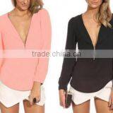 2016 New Fashion Women Autumn Sexy Long Sleeve Zipper Chiffon Blouse