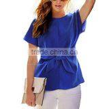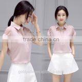 2016 Fashion Short Sleeve Bow O-neck Office Women Chiffon Shirt