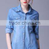 Wholesale Factory Price Brand Ladies Casual Jeans Fabric Sexy Fancy Denim Shirt Women
