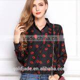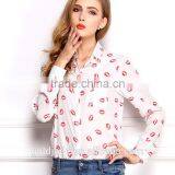Hot New Design Cute Red Lips Prints Elegant Chiffon Blouse and Tops
