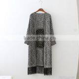 2015 New Fashion Long Chiffon Cardigan,maxi Ink Printing Chiffon Cardigan for Women With Long Sleeve Falbala Placket