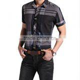 2016 New Fashion Short Sleeve Men Slim Fit Plaid Dress Shirts