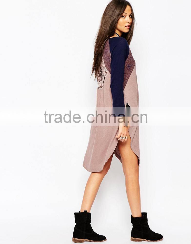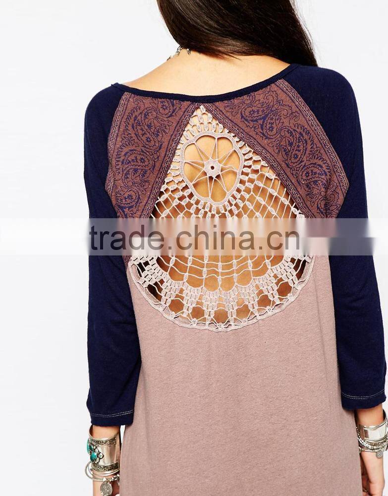 China Factory OEM ODM 2015 New Fashion Customized Round Neckline Tunic With Crochet Lace Back