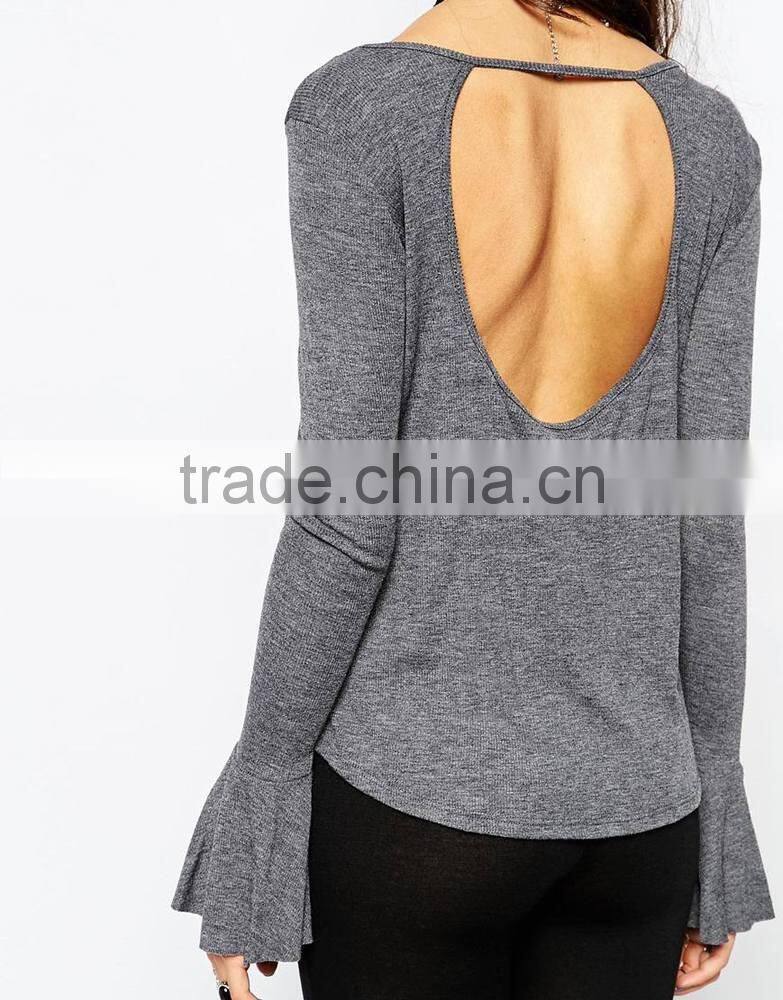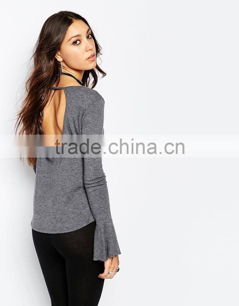 China Factory OEM ODM 2015 New Fashion Customized Oversized Bell Sleeve Top