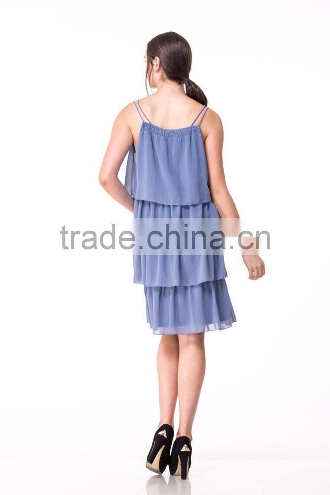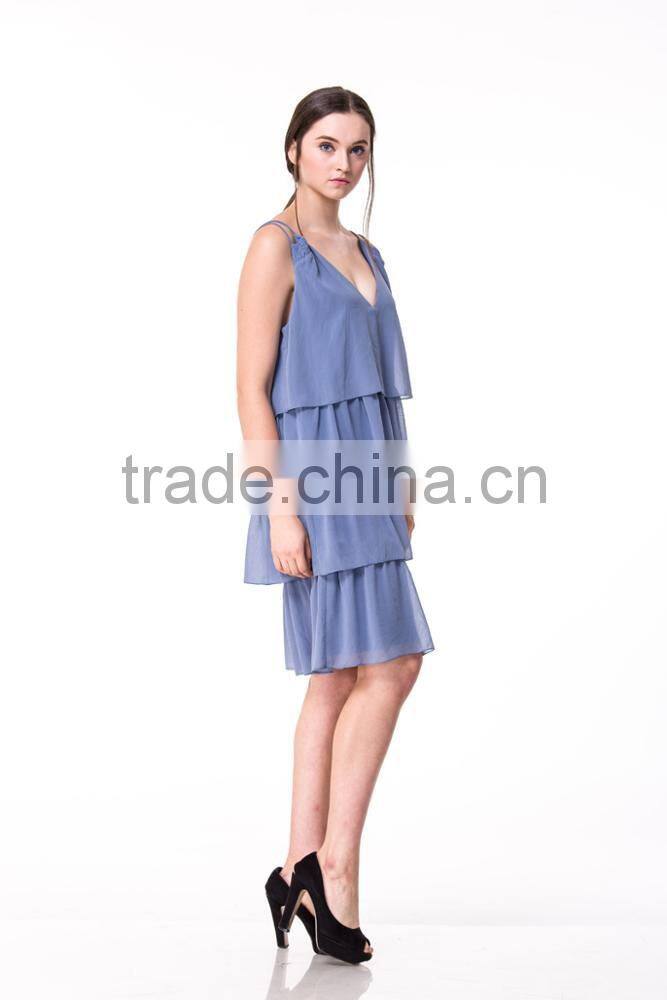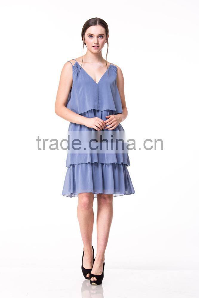 Fast Fashion Design Women Clothing Manufacturer Round Neck Strappy V Neck Ladies Party Dress
