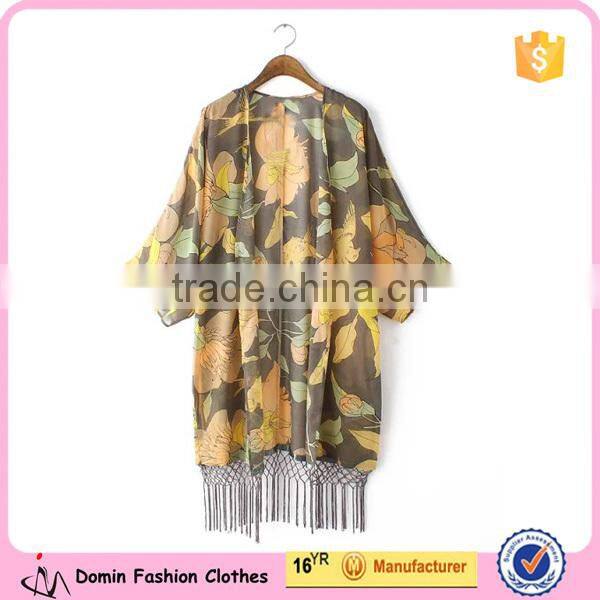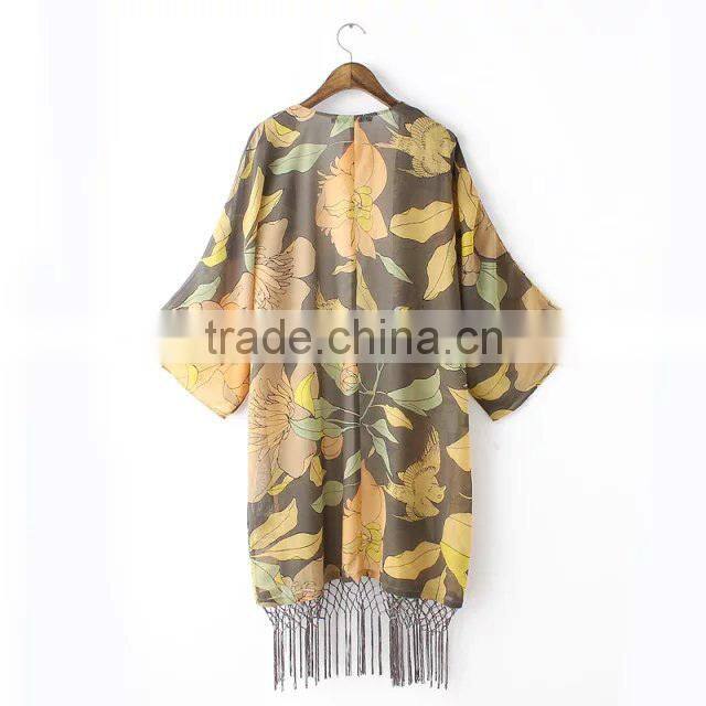 2015 New Fashion Tassel Design Print Kimono Cardigan