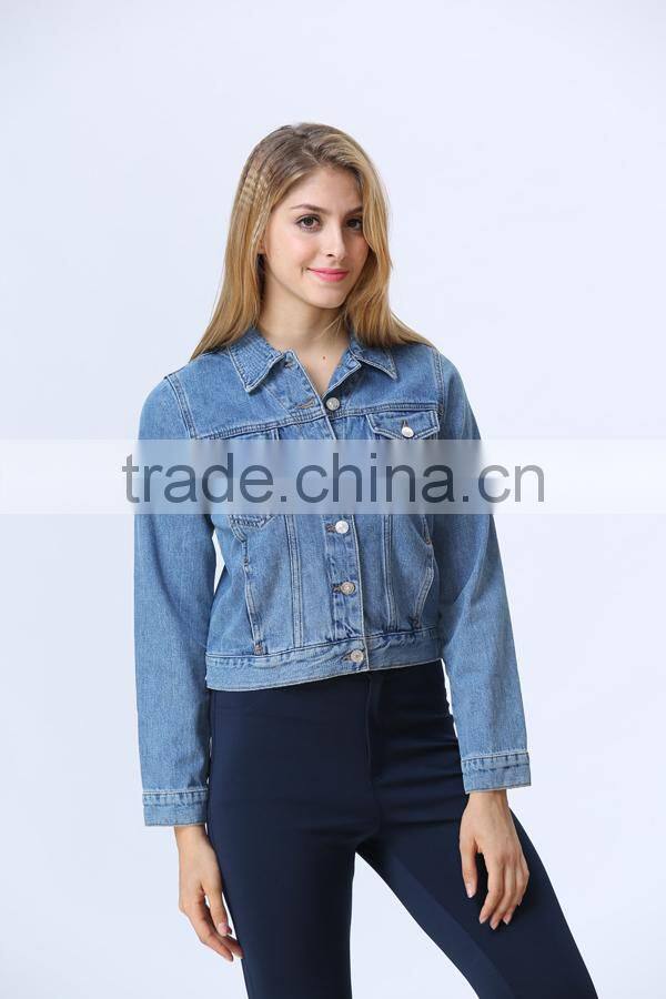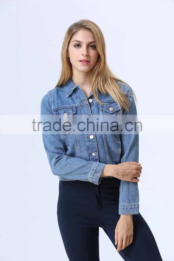 New Fashion Clothing Manufacturer Long Sleeve Blue Denim Jacket For Lady