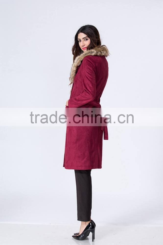 New Fashion Wholesale Clothing Manufacturers Women Suede Jacket With Fur Collar