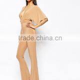 2015 China Factory OEM ODM Fashionable Customized Slinky Flared Sleeve Jumpsuit With Plunge Neckline