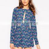 2015 Fashionable Hot Sale OEM Customized Romper in Folk Print With Lattice Tie Sleeves
