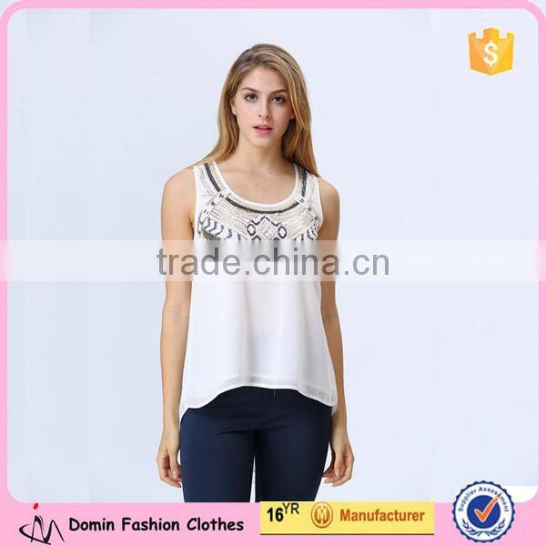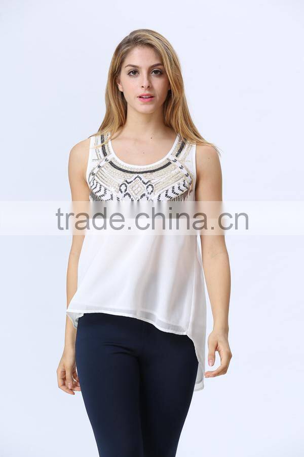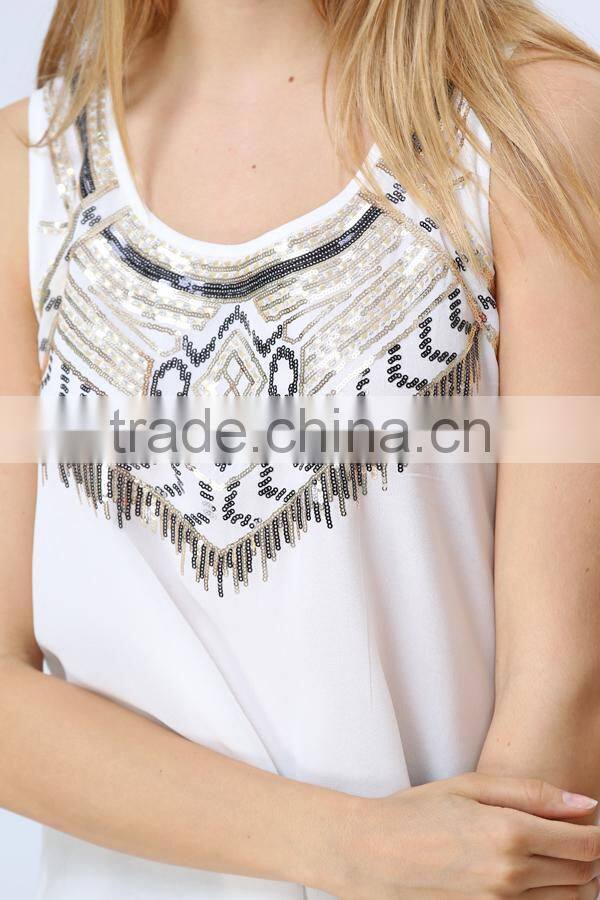 New Fashion Design Round Neck Sleeveless Beaded Top For Women