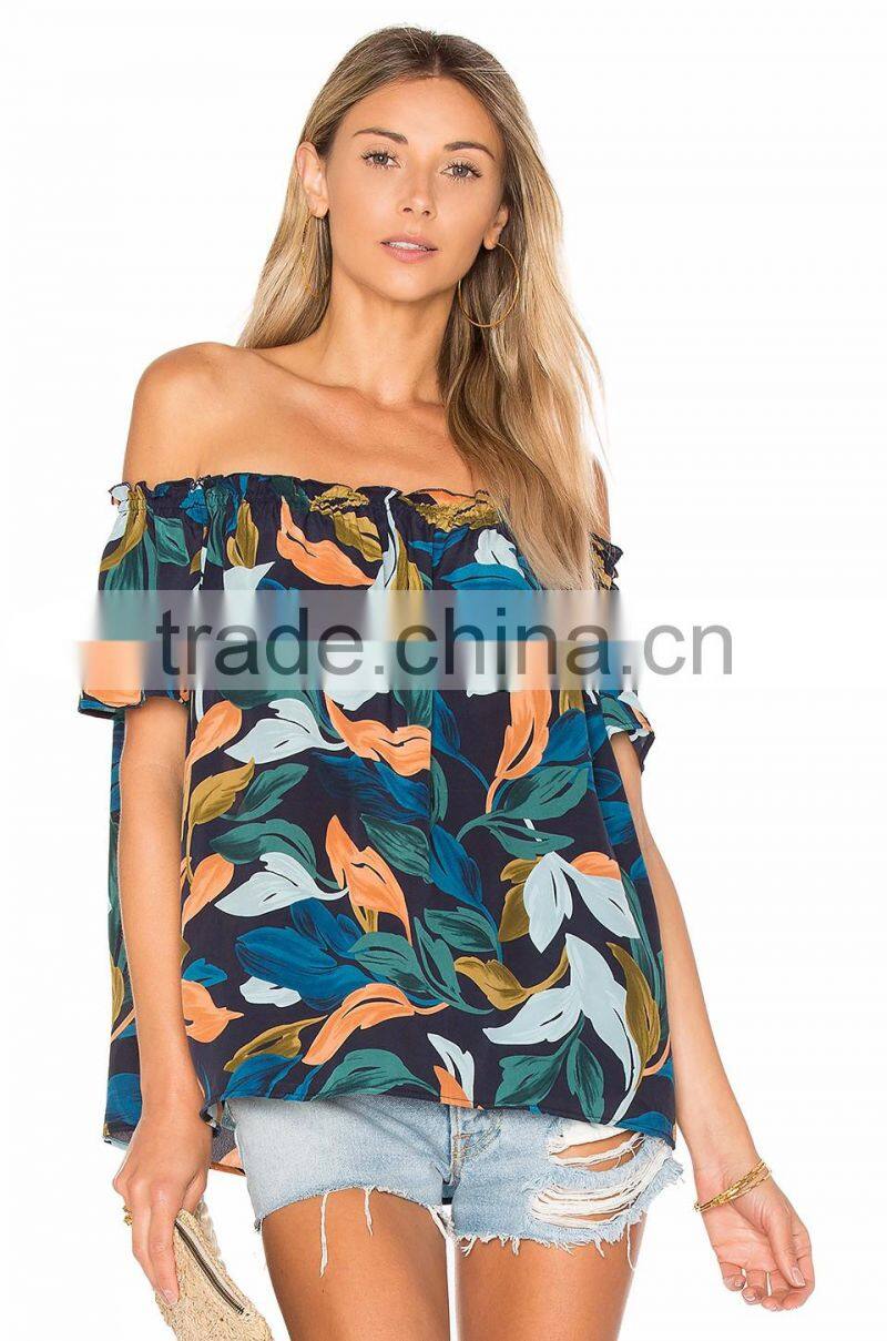 Home > Products > OEM Ladies Tops > Hot Sale Women Printed Tops off Shoulder Fancy Saree Blouse Designs