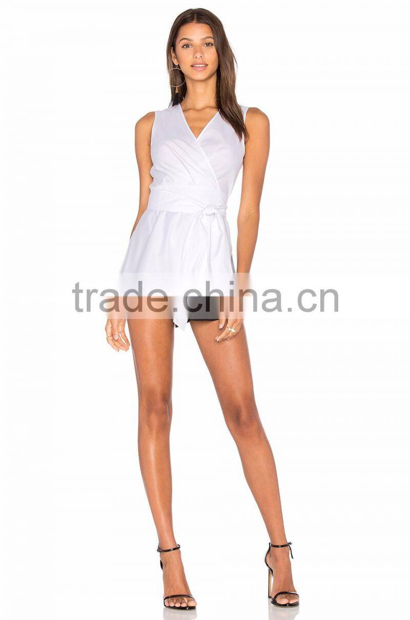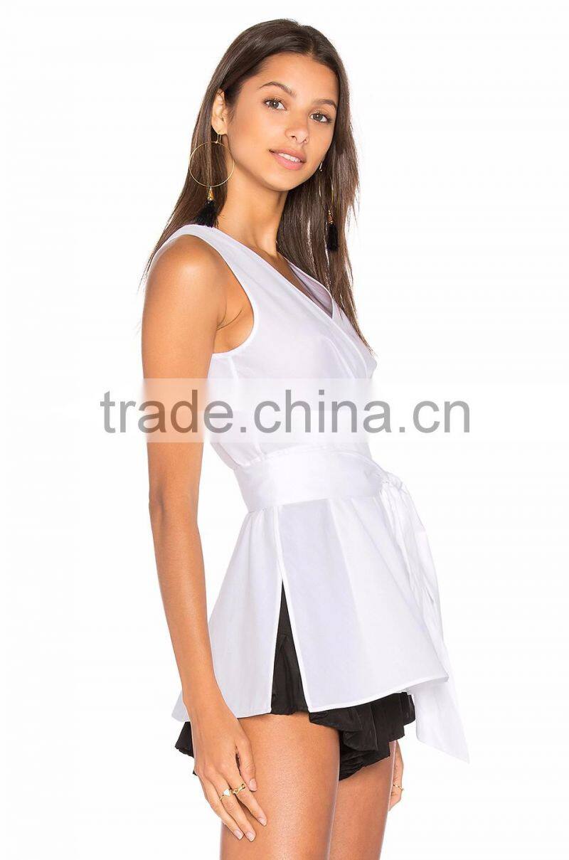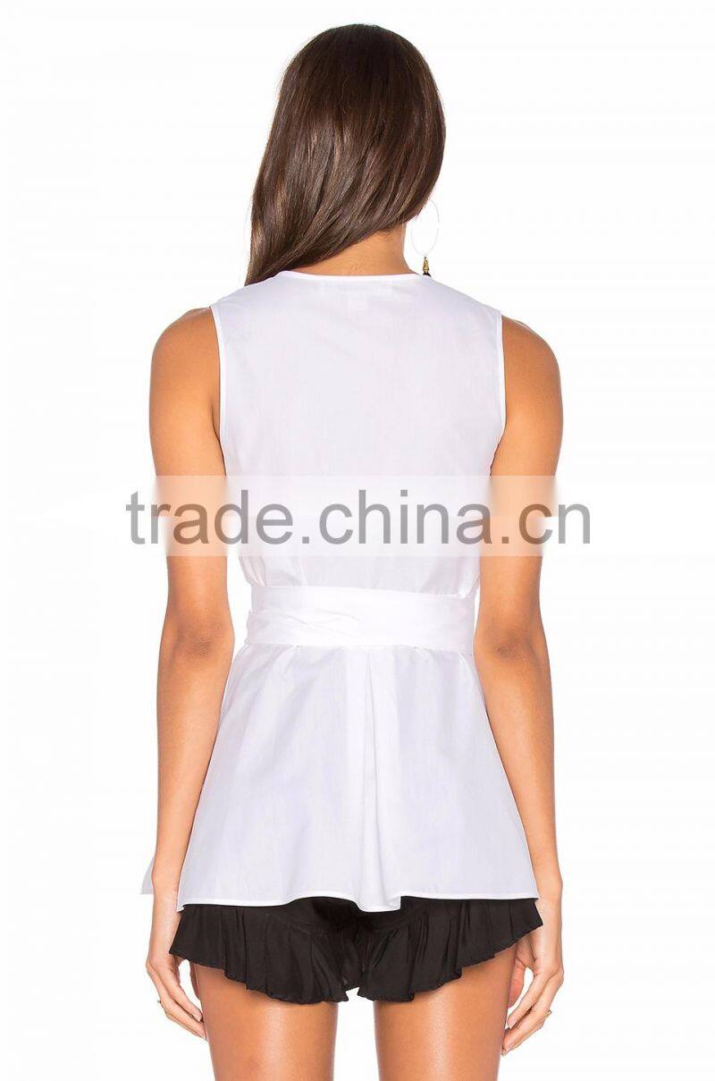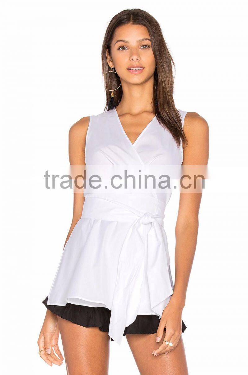 Home > Products > OEM Ladies Tops > V Neck Wrap Top Sleeveless Sexy Lady Latest Top Design for Women