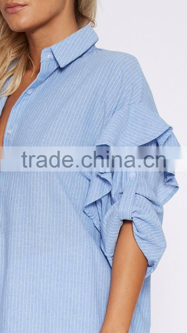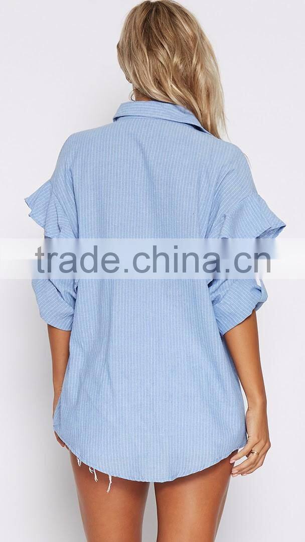 Home > Products > OEM Ladies Tops > Latest Design Women Shirt Puff Sleeve Adult Ruffle Raglan Shirt