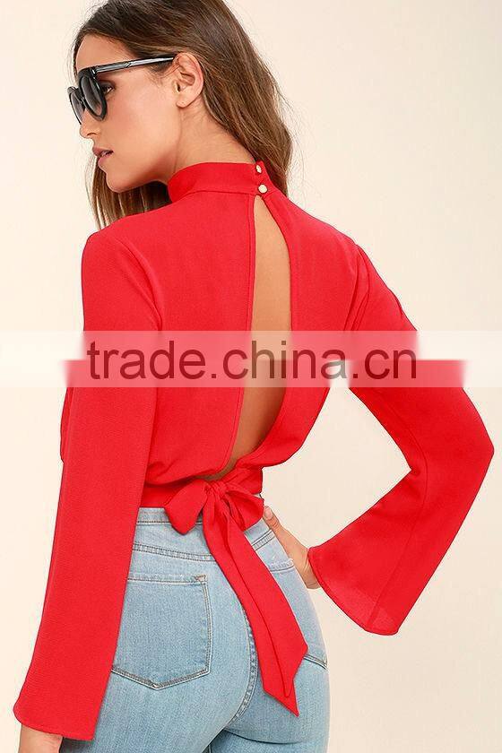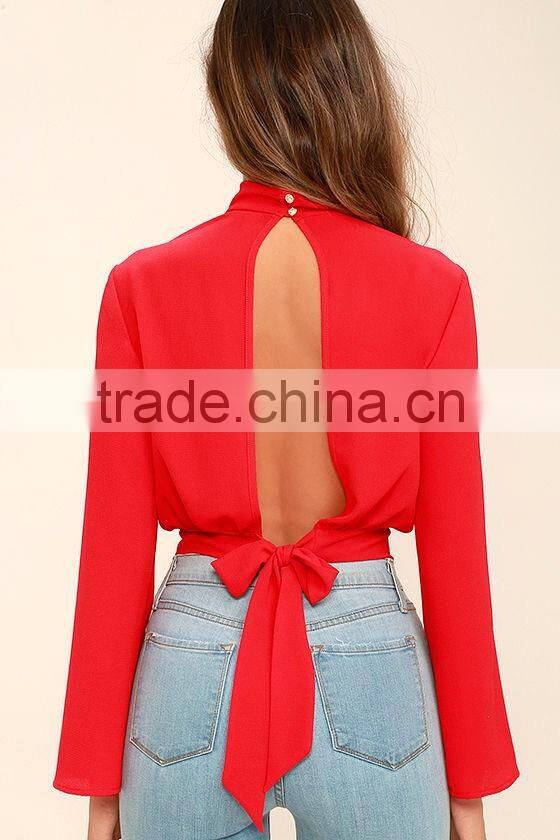 Home > Products > OEM Ladies Tops > Fashion Design Ladies Crop Tops Blouse Images of Chiffon Tops