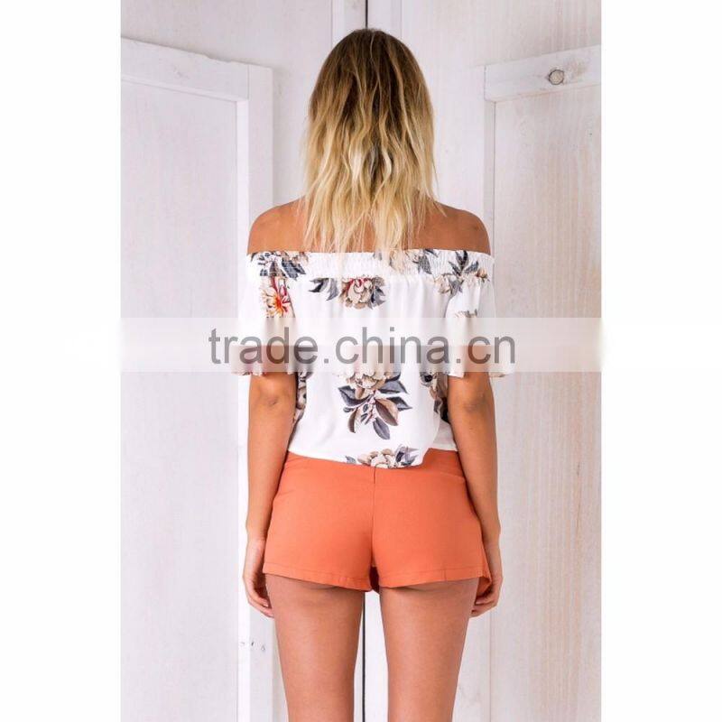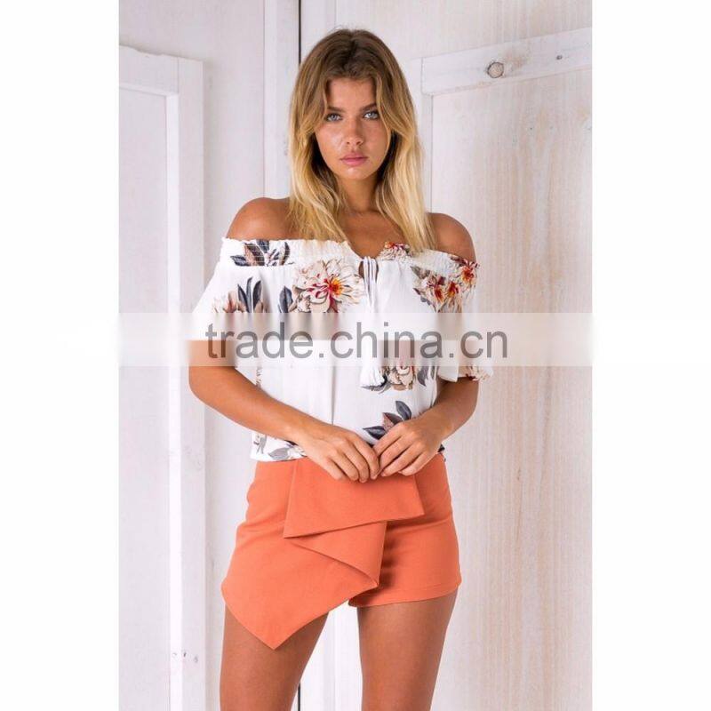 short sleeve off shoulder floral print top