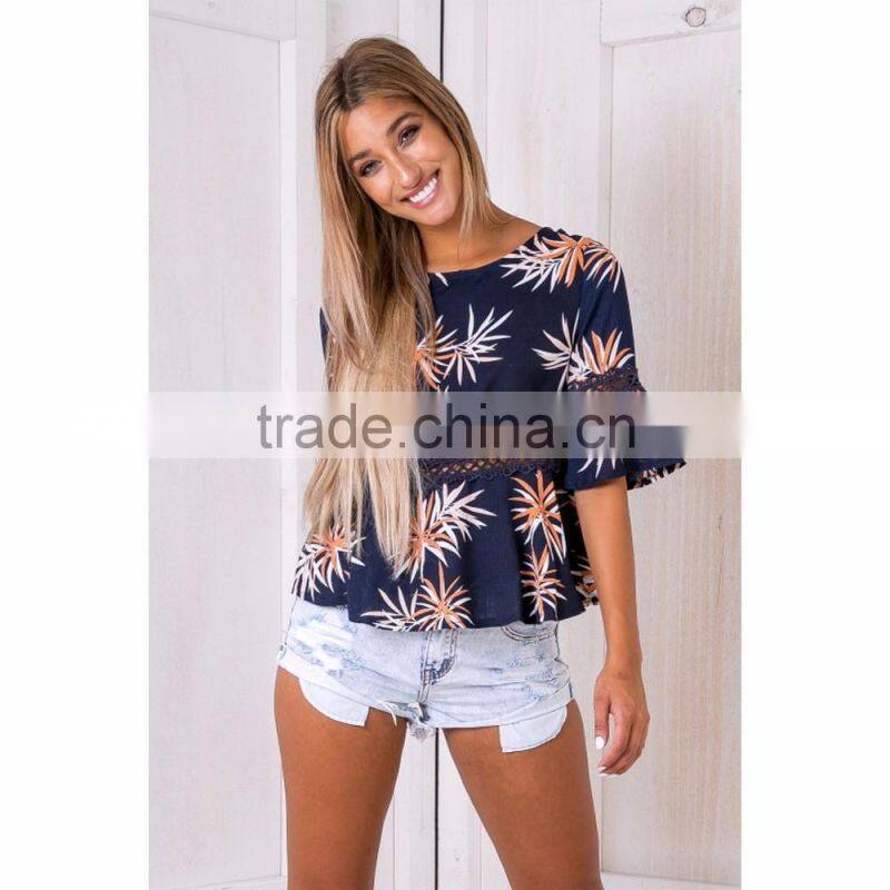 Guangzhou Women Clothing Floral Print Summer Tops Custom Crop Top Printing