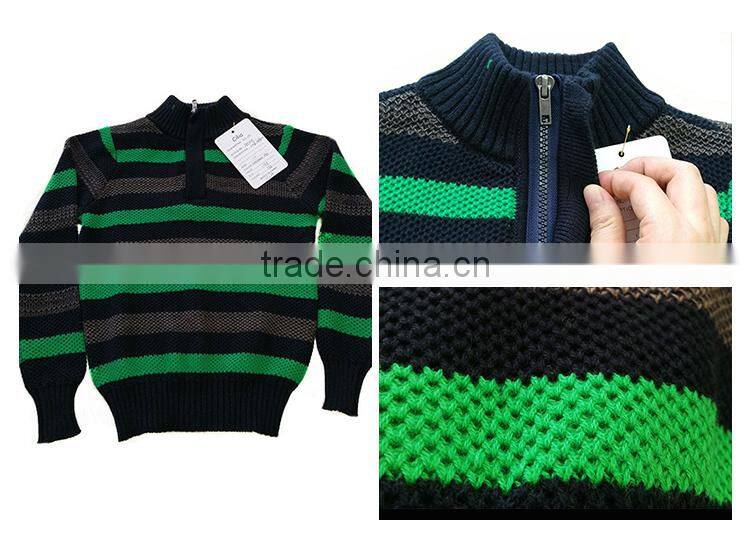 China Supplier Hot Sale Nice Children Black and Green Knitting Stripe Sweater for Winter